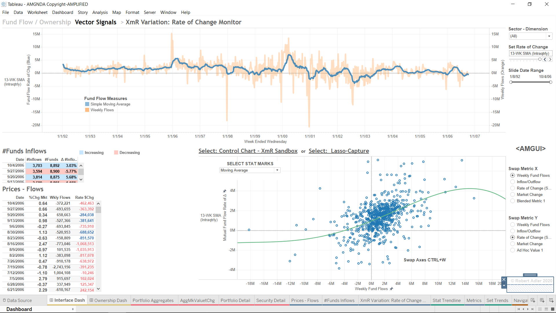 The regulated data are visualized with control of unique interactive dashboard overlays of action in the $40 Trillion asset subset of open-end mutual fund (including ETF) real investment and expected value vectors of professional portfolio holdings information at the forefront of change.